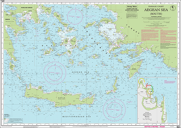 Imray-Tetra charts for the Ionian and Aegean are widely acknowledged as the best available for the cruising sailor. They combine the latest official survey data with first-hand information gathered by Rod and Lucinda Heikell. The chart is designed to be used alongside Imray pilot guides of the area. Like all Imray charts, they are printed on water resistant Pretex paper for durability, and they include many anchorages, facilities and inlets not included on official charts.