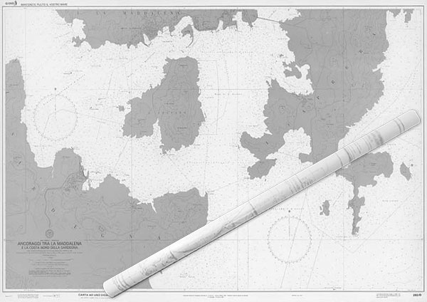 Carta didattica 282/D per svolgere esercizi di carteggio – Ancoraggi tra La Maddalena e la costa nord della Sardegna