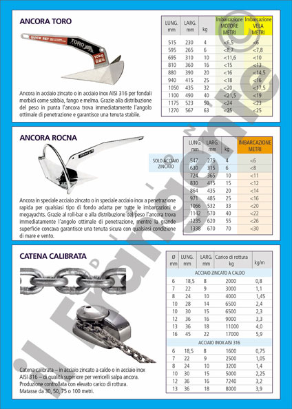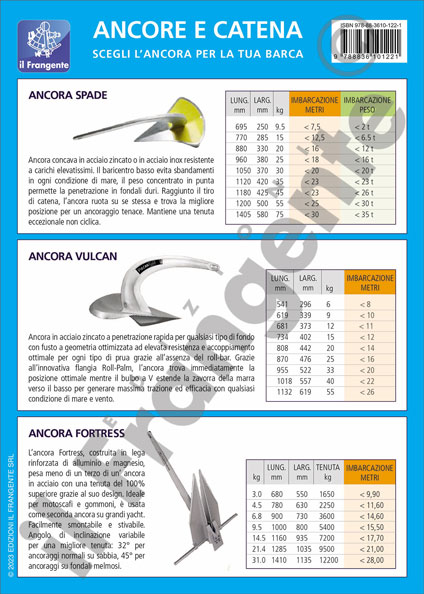 Questa scheda descrive i principali tipi di ancore moderne e le loro caratteristiche tecniche. Per ogni ancora vi è una tabella riassuntiva che permette di scegliere in modo immediato il tipo di ancora da utilizzare in base a dimensioni e peso dell’imbarcazione.