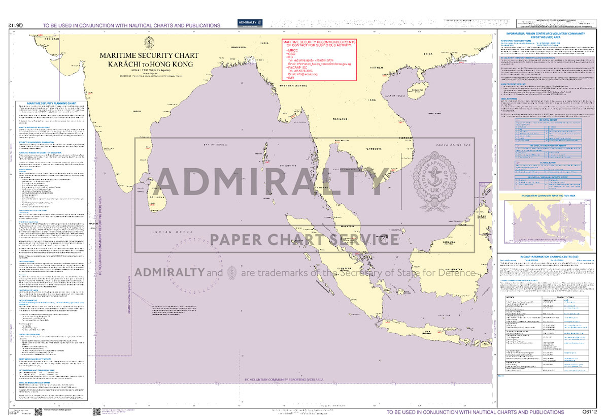 Questa carta contiene informazioni relative alla sicurezza marittima dell’area geografica indicata. Include anche i dettagli degli schemi di segnalazione e dei contatti regionali, nonché consigli generali sulla sicurezza. Deve essere utilizzato insieme alle carte e pubblicazioni nautiche.