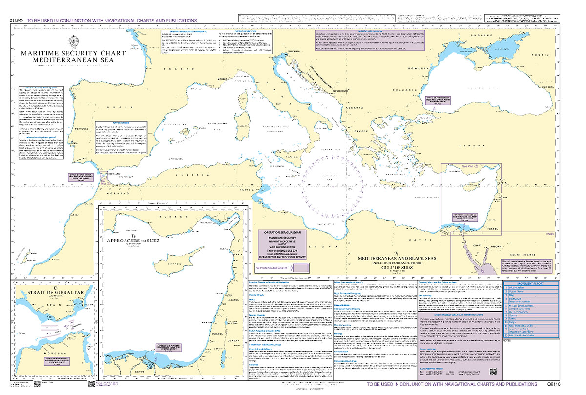Questa carta contiene informazioni relative alla sicurezza marittima dell’area geografica indicata. Include anche i dettagli degli schemi di segnalazione e dei contatti regionali, nonché consigli generali sulla sicurezza. Deve essere utilizzato insieme alle carte e pubblicazioni nautiche.