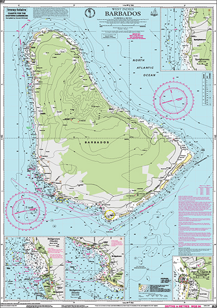 On this edition port development at Bridgetown is included. The plan of Port St Charles has been reschemed to include Port Ferdinand. The chart specification has been improved to show coloured light flashes. There has been general updating throughout.