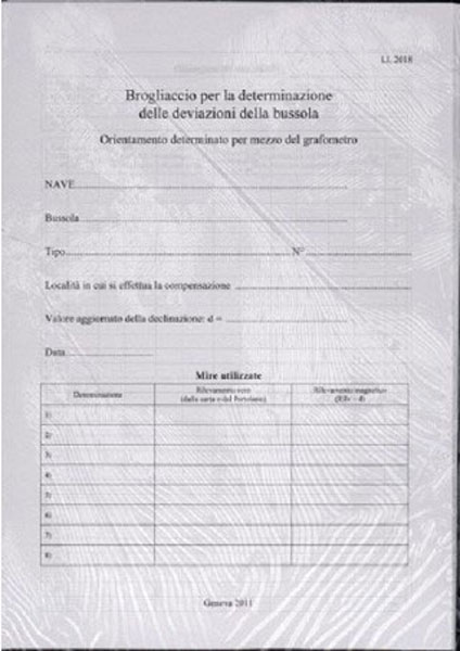 Brogliaccio per la determinazione delle deviazioni della bussola – Orientamento determinato per mezzo del grafometro – (blocco 10 fogli)