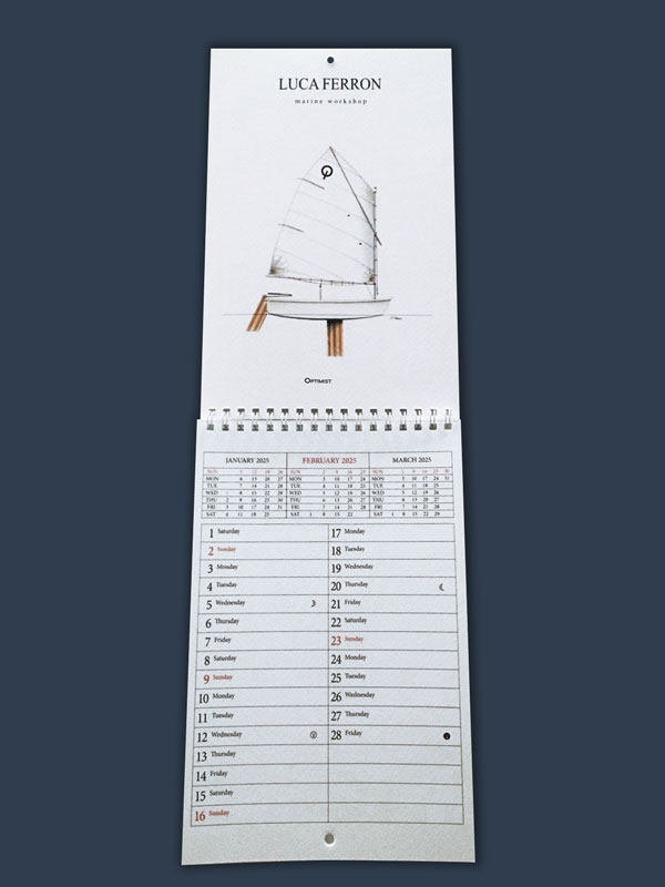 Il calendario contine le stampe dei disegni di Luca Ferron realizzati a mano a partire dai progetti originali e dipinti ad acquerello, inchiostro e china secondo una tecnica affinata in ventiquattro anni di esperienza. Ne risultano opere di grande precisione e raffinatezza.