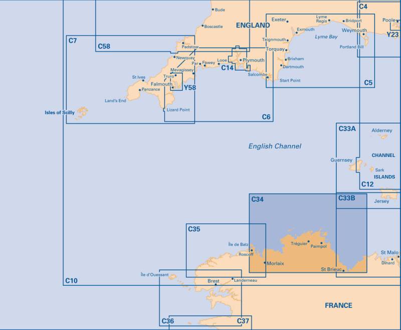 For this 2014 the chart has been fully updated throughout. Revised depths have been applied where necessary and positional accuracy with reference to WGS84 Datum has been improved. The plan of Port du Légué has been replaced with a correctly scaled plan.