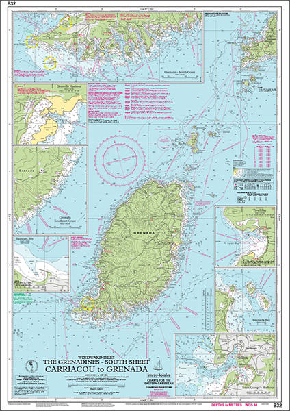 This edition includes the latest official data combined with additional information sourced from Imray”s network to make it ideal for small craft. It includes the latest official bathymetric surveys. New to this edition is the inclusion of a harbour plan of Sauteurs Bay. There has been general updating throughout.