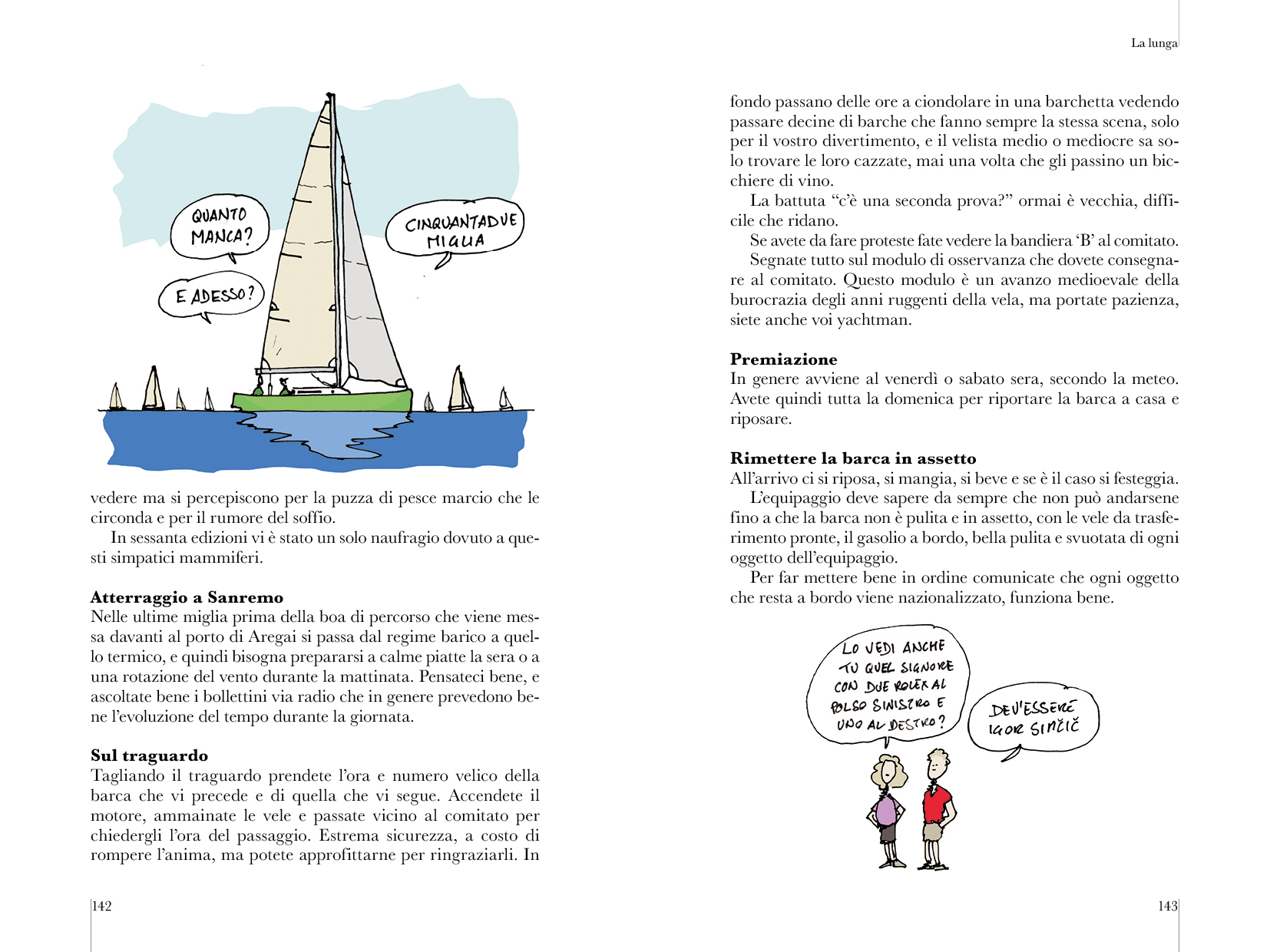 Un manuale che è una vera e propria miniera di consigli tecnici per chi sogna di partecipare a una edizione della Giraglia, la regata più famosa del Mediterraneo, nello stile inconfondibile di Davide Besana, con illustrazioni preziose e un po’ di ironia. Per far le cose bene, possibilmente vincere, ma senza mai prendersi troppo sul serio. Un elenco di consigli, basati sull’esperienza diretta di più partecipazioni alla regata, che si spingono fin nei dettagli più minuti, su tattica, meteo, vele e sicurezza, ma anche su come organizzare la cambusa, quali abiti portare e come organizzare i turni di sonno, per non lasciare nulla al caso. Consigli che saranno preziosi, anche oltre la Giraglia, a chiunque si appresti a partecipare a una regata d’altura.