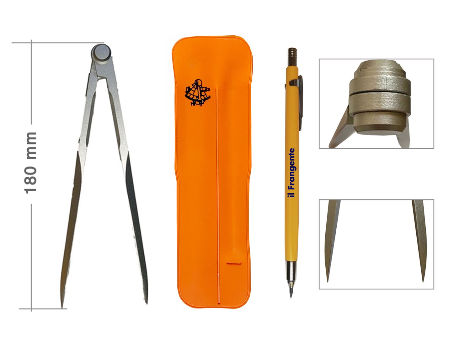 – compasso nautico in metallo satinato a punte fisse da 18 cm