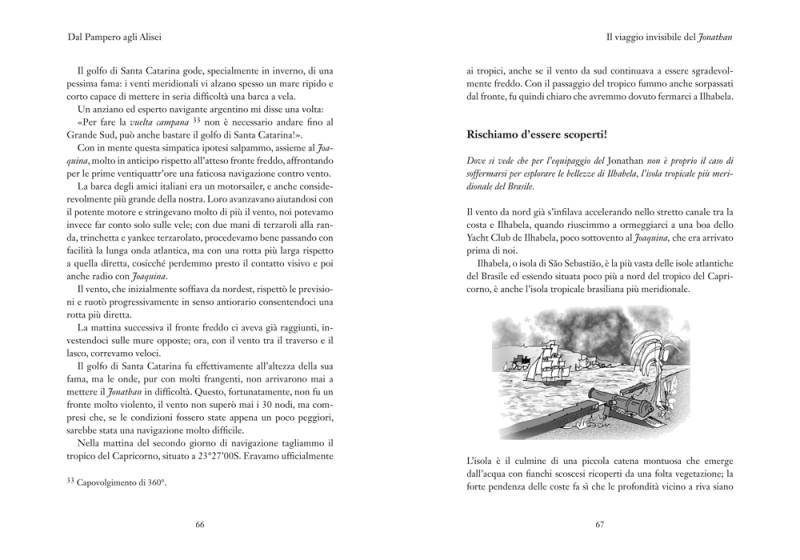 Come un antico vascello fantasma, degno dei racconti più misteriosi del mare, il Jonathan con il suo equipaggio si è trovato nella condizione di dover percorrere per ben quattromila miglia l’intera costa brasiliana, dal confine con l’Uruguay a quello con la Guayana francese, all’oscuro dalle autorità del Paese a causa di un quasi kafkiano cavillo burocratico. Un viaggio che dunque doveva essere invisibile, ma allo stesso tempo visibile a chi incontrava lungo la rotta, per vivere al meglio le bellezze naturali e l’atmosfera magica di questo straordinario Paese.