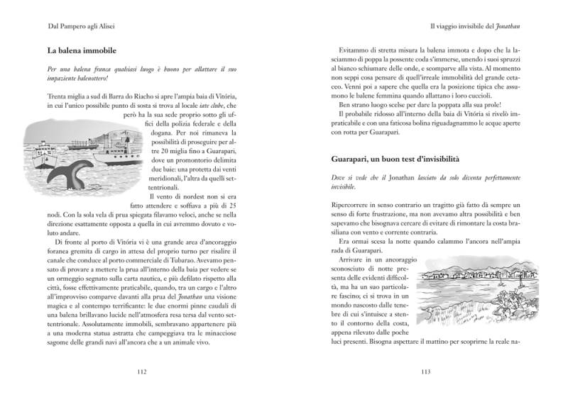 Conosceremo così Shirley, navigatrice solitaria con il suo valente Speedwell of Hong Kong, salpata da Cape Town, in vagabondaggio da anni tra l’Atlantico meridionale e settentrionale inanellando miglia su miglia; l’enigmatico avventuriero Bruce, sperduto in Argentina nella Bahia de Sanblas, oramai giunto alle soglie della senilità e con davanti a sé la sola prospettiva di un sereno declino; ci si commuoverà sulla sorte della barca Tetis, che pensando d’essere tornata a correre libera per gli oceani incontrerà, invece, il suo triste destino; l’argentino Tirso, nelle cui vene probabilmente scorre più acqua di mare che sangue; oppure Francesco, un coraggioso siciliano lanciato su una barca d’epoca verso il Sud del mondo; ricompare il simpatico Roland, un personaggio presente anche in altri racconti, questa volta impegnato in un’avventura brasilegna a Fortaleza.