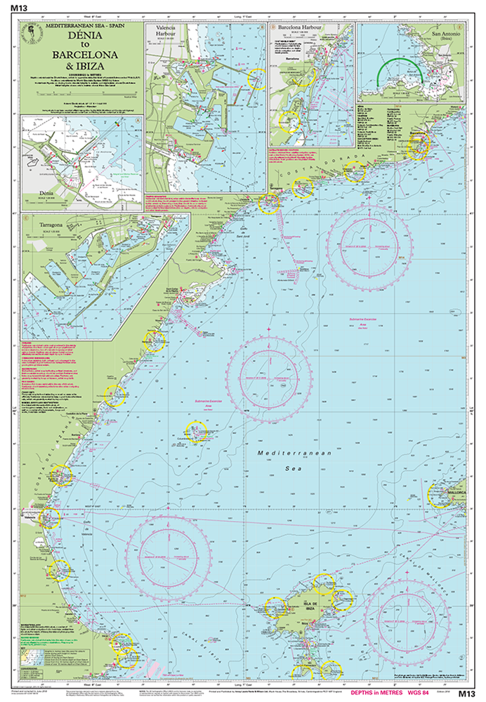 This edition includes the latest official Instituto Hidrográfico de la Marina data, combined with additional information sourced from Imray”s network to make it ideal for small craft. The chart has been fully revised throughout. The plans of Puerto de San Antonio (Ibiza) and Alcudia (Mallorca) now provide coverage at improved larger scales.