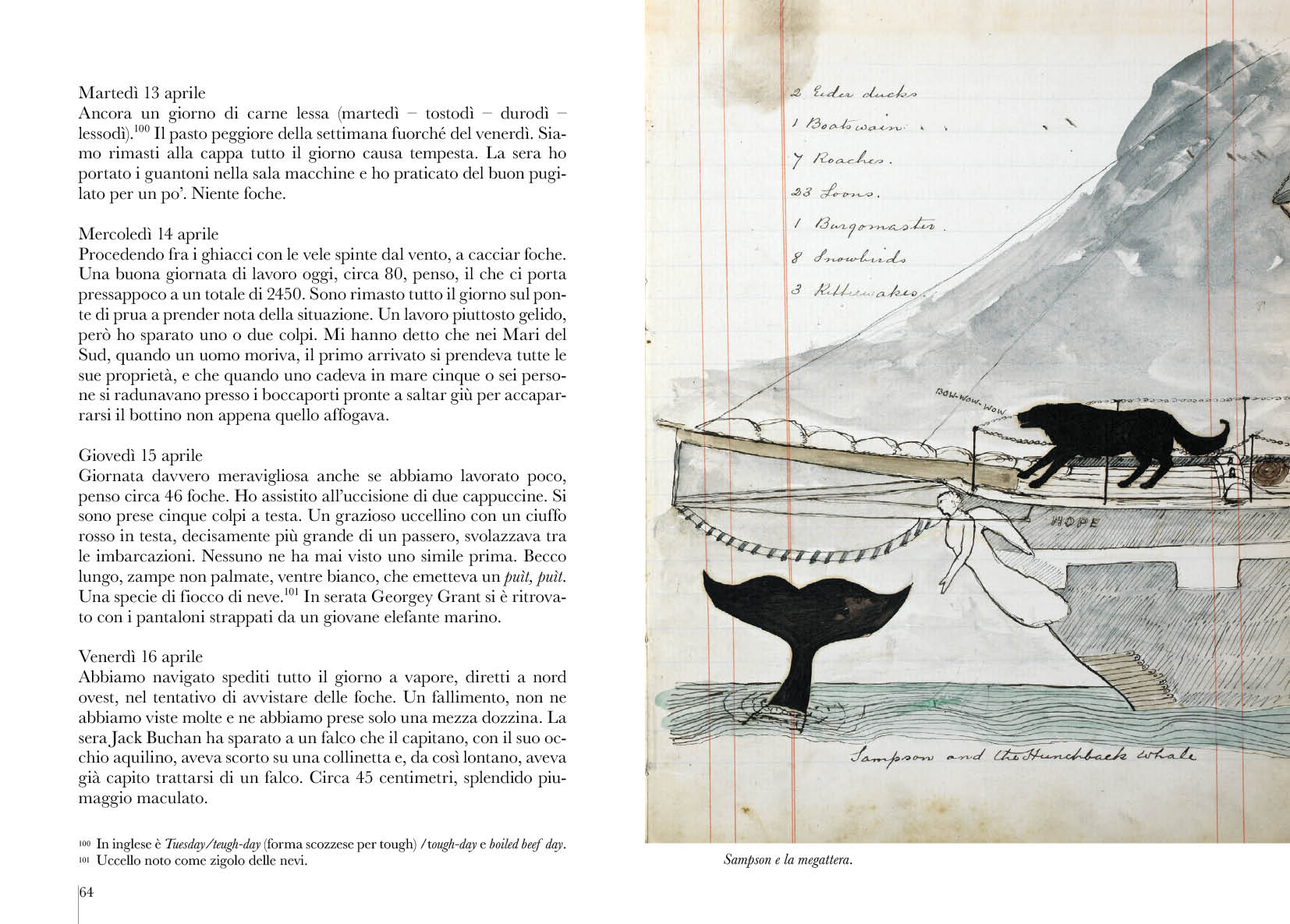 Il viaggio sulla baleniera Hope è descritto quotidianamente, nei dettagli. Alla meraviglia per i paesaggi e le atmosfere mistiche si accompagnerà, a ogni latitudine, la paura del fallimento e del naufragio. Le condizioni ambientali precarie e le ricorrenti tempeste mutavano la disposizione dei ghiacci continuamente, provocando non poche preoccupazioni a tutta la ciurma. E poi c’erano le balene: questi magnifici cetacei sono sempre descritti con rispetto. La loro maestosità ha sempre un che di soprannaturale. Doyle ne rimarrà affascinato insieme a tutti gli altri animali, nonostante debba cacciarli.