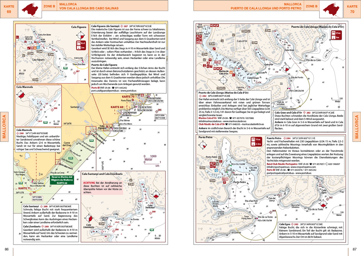 Die 51 Hafenpläne und 347 Ankerbuchtpläne sind umfangreich und benutzerfreundlich gestaltet. Zahlreiche Piktogramme verdeutlichen die wichtigsten Einrichtungen in den Häfen und an Land, während die informativen Texte die Navigation und Ansteuerung optimal unterstützen.