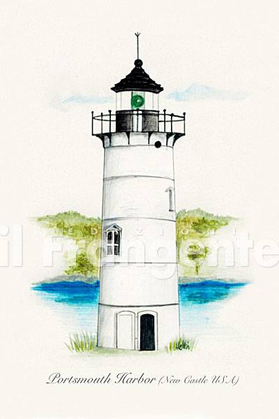 Stampa di disegno realizzato a mano con tecnica a pastello, raffigurante un faro in varie zone del mondo.