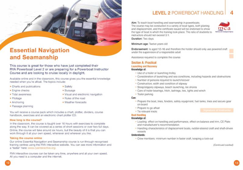 RYA Powerboat Scheme Syllabus & Logbook details the structure and content of all courses from beginner to advance within the RYA Powerboat Scheme. There is also a logbook section which enables you to keep a record of your personal powerboating achievements plus information relating to all relevant shorebased courses.