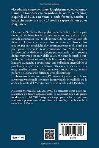 Quella che Nicoletta Meregaglia ha per la vela è una vera passione. Fin da bambina le piaceva tantissimo stare al mare durante le vacanze estive. Da adolescente, dopo i corsi alla scuola di vela di Caprera, adorava andare in deriva e in barca. Purtroppo, per vari motivi, ha dovuto smettere per molti anni, per poi riprendere con lo stesso entusiasmo. Nel 2001 decide di lasciare un’invidiabile situazione professionale per inseguire definitivamente i «piaceri della vela», che sono le terribili burrasche, le navigazioni toste, le boline lunghe e bagnate, le veleggiate stupende, e soprattutto una collezione incredibile di problemi che spaziano da motori rotti a vele stracciate, a strumenti mal funzionanti, a wc intasati e ad ancore perse, per non parlare delle spassose difficoltà con gli equipaggi. In chiave ironica e divertente, l’Autrice skipper racconta le sue avventure ventennali per mare, in un viaggio incredibile tra le onde e le coste del Mediterraneo, dei Caraibi e del Pacifico.