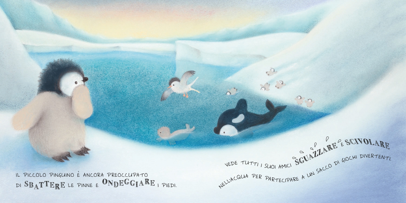 È un giorno importante per il piccolo pinguino, quello della sua prima nuotata. A mano a mano che incontra i suoi amici lungo la strada, cerca di superare le sue paure. Sarà abbastanza coraggioso per saltare in acqua e nuotare? Unisciti a lui in questa nuova avventura!