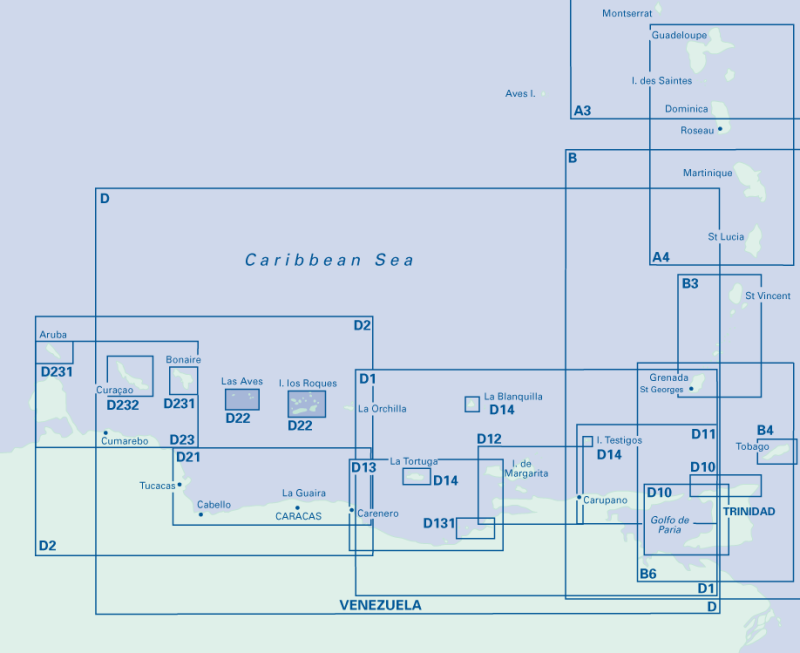 Imray-Iolaire charts for Caribbean are widely acknowledged as the best available for the cruising sailor. They combine the latest official survey data with first-hand information gathered over 60 years of research by Don Street Jr and his wide network of contributors. Like all Imray charts, they are printed on water resistant Pretex paper for durability, and they include many anchorages, facilities and inlets not included on official charts.