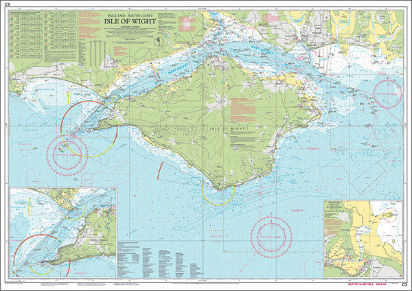 This chart has been reschemed to better compliment the other folded charts in our Solent chart range (C15, Y33). Coverage has been adjusted to show the full circumnavigation of the Isle of Wight including the south coast passage. Inset plans of the Needles Channel and Bembridge Harbour and approaches are included.