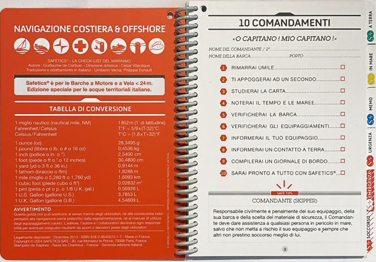 “LA CHECK-LIST DEL MARINAIO” è impermeabile e resistente agli strappi, si tiene comodamente in tasca e serve a tutti per prevenire gli incidenti e fornire procedure per la loro risoluzione.