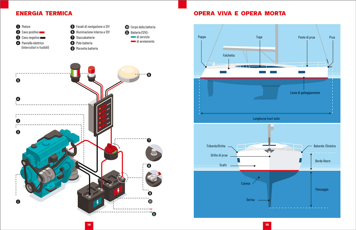 Senza dimenticare le manovre di base a vela e a motore, boe, luci e segnali, regole di governo, alfabeto fonetico internazionale, bandiere e guidoni.