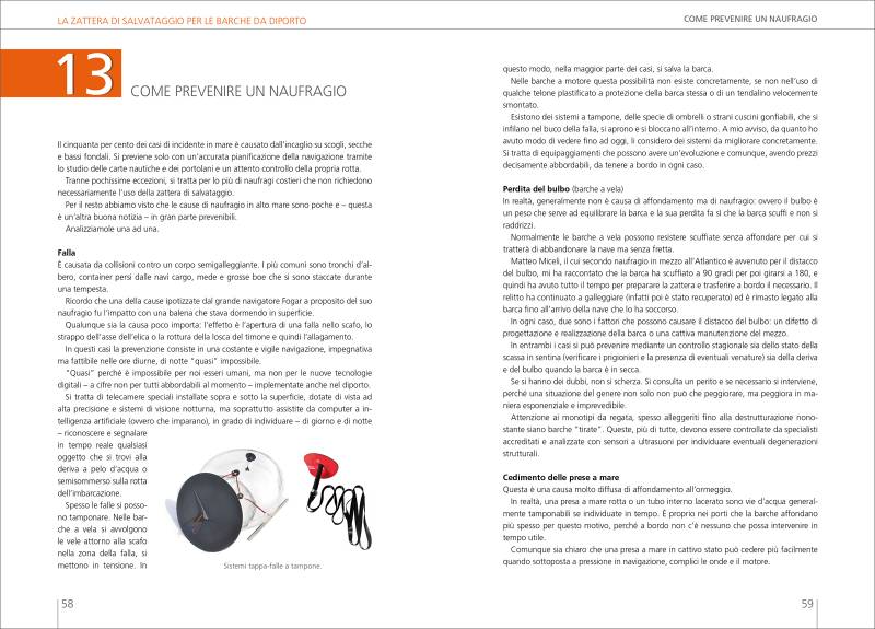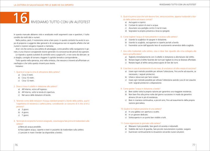 Il manuale comprende inoltre un importante contributo del giornalista Nico Caponetto con il suo resoconto di un test pratico di sopravvivenza in mare su una zattera effettuato per conto della rivista “Nautica” attraverso il supporto tecnico dell’autore, l’organizzazione sanitaria di Medical Service Assistance e l’assistenza dell’Ufficio Circondariale Marittimo di Santa Margherita Ligure.