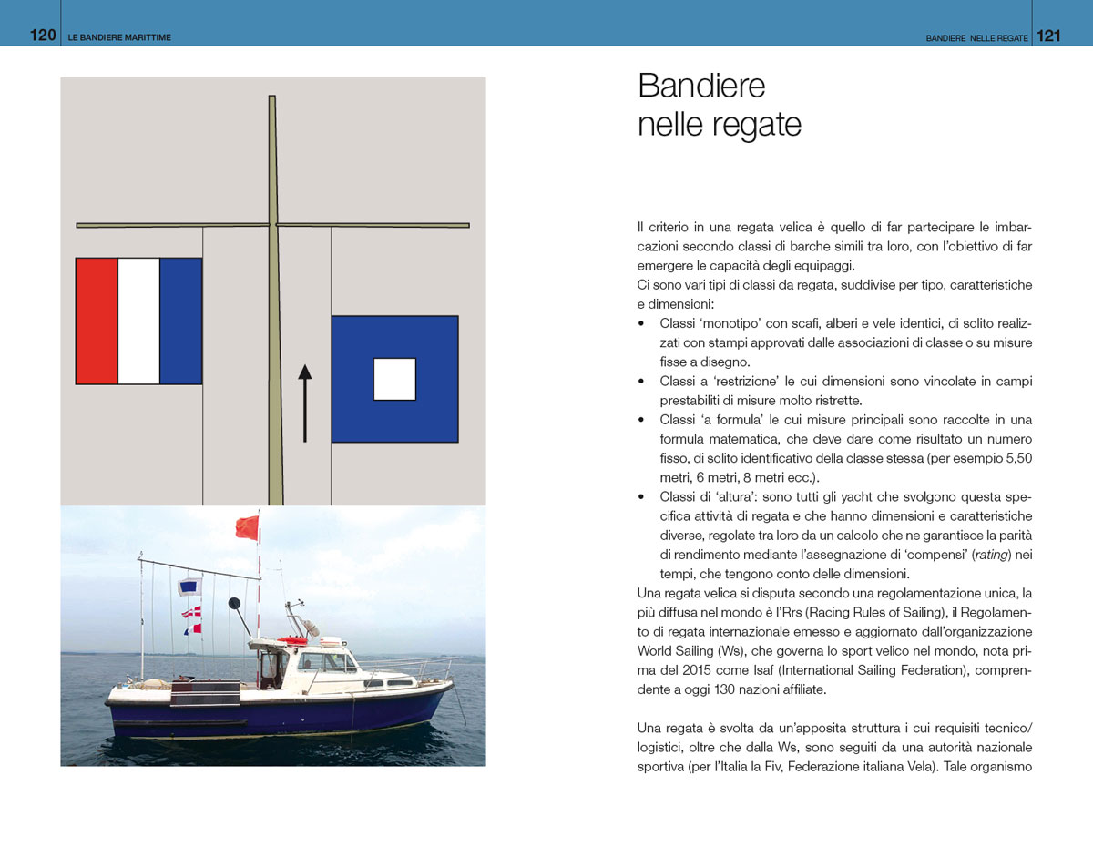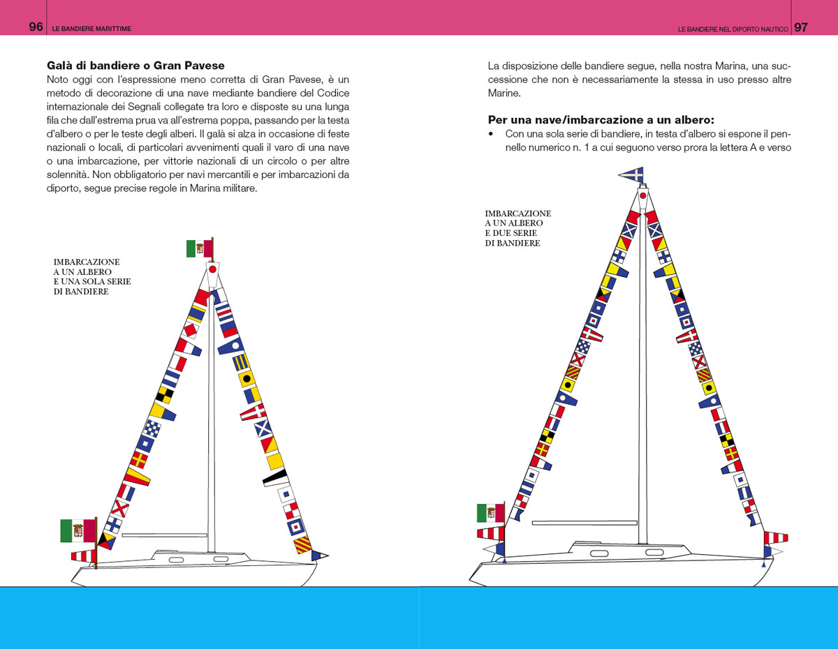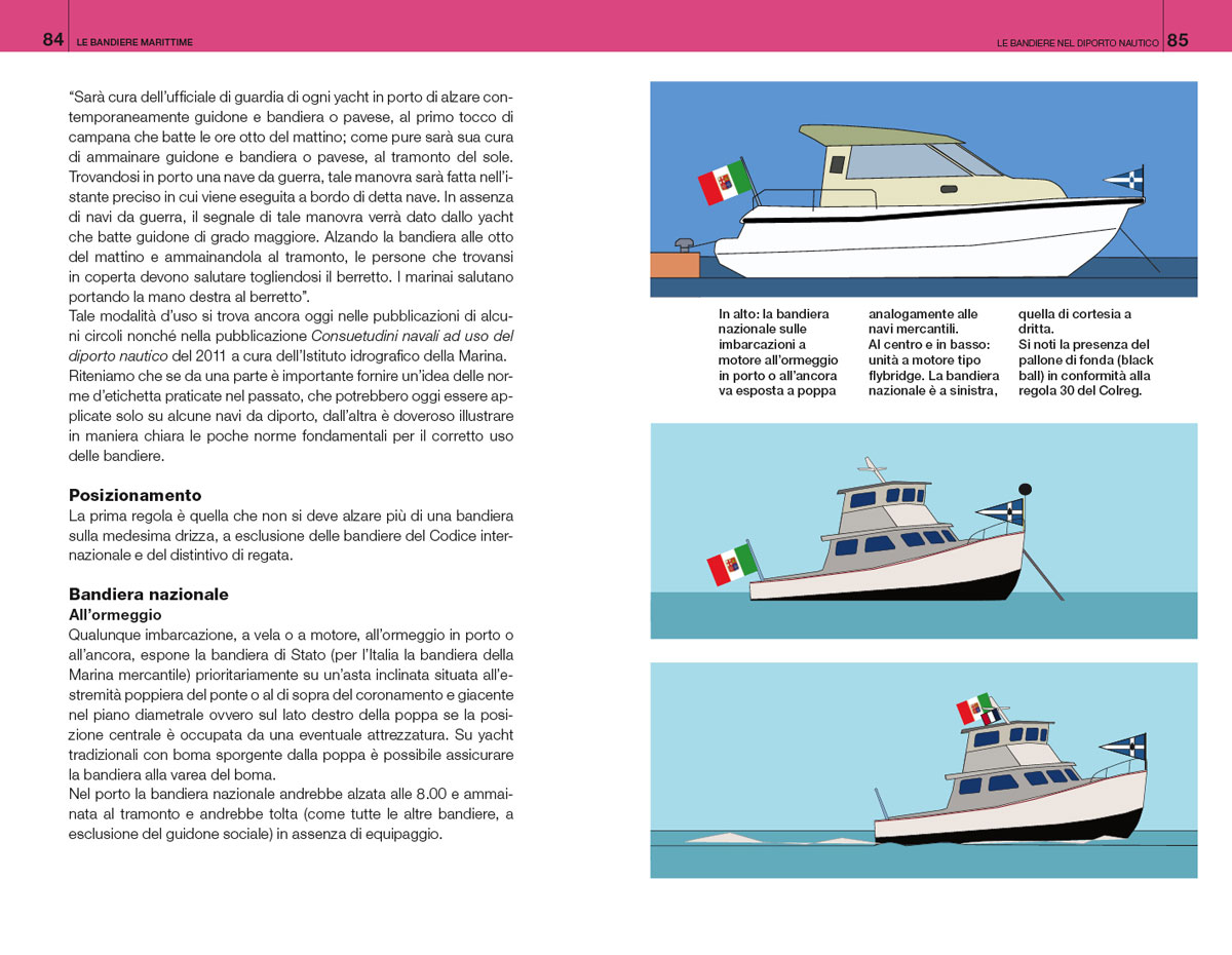 Le bandiere marittime hanno una storia lunga e affascinante e regole d’uso precise e dettagliate, una vera e propria ‘etichetta’ marinara che un buon diportista non dovrebbe ignorare. In questo volume troverete come nasce, e come cambia nel tempo, la bandiera marina nazionale, ma anche il Codice internazionale dei Segnali, come inviare segnali o rispondere, e poi forme e misure delle varie bandiere, anche in relazione alla lunghezza della vostra imbarcazione, dove posizionarle e come disporre un Gran Pavese in un’occasione speciale. Un capitolo a parte è dedicato alla regata dove ancora oggi le bandiere svolgono una funzione fondamentale, per cui conoscerne il linguaggio è assolutamente necessario. E infine una raccolta completa delle bandiere nazionali con le loro varianti marittime e mercantili.
