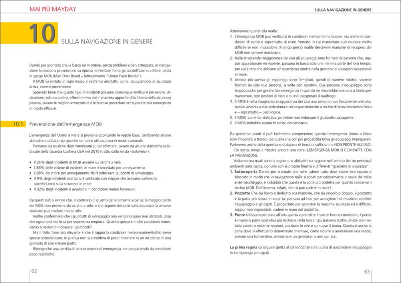 Fondamentale è un accurato controllo degli equipaggiamenti e delle dotazioni di bordo, ma altrettanto importante è il fattore umano, per cui il ruolo del comandante e un equipaggio preparato possono davvero fare la differenza. Non a caso l’autore ha inserito diverse testimonianze di esperienze reali che, al di là di ogni teoria, rispecchiano quali sono le effettive reazioni di fronte a situazioni di pericolo in navigazione.