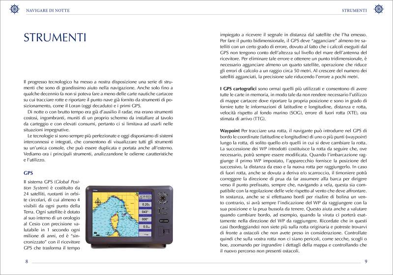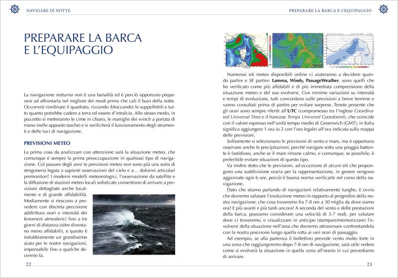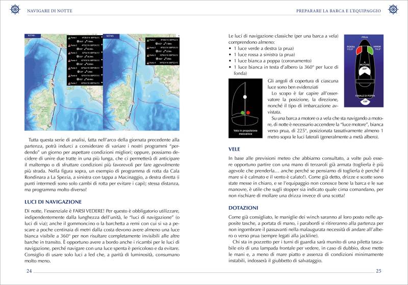 In queste pagine sono raccolti tutti gli aspetti che contribuiscono a portarci a navigare con tranquillità anche di notte, usando quello che abbiamo a disposizione. Dopo una breve descrizione degli strumenti, si prospettano le situazioni particolari che si possono presentare, da imparare ad affrontare soprattutto con la pratica, pur ricordando i consigli. Poi ci sono il silenzio, il cielo stellato, i rumori della barca e delle vele nel buio; sono sensazioni personali, che ognuno interpreta e apprezza a modo suo, ma fanno anch’essi parte dei ritmi della navigazione, così diversi dalla vita a terra e che sono quelli per cui apprezziamo e rispettiamo il mare e il navigare. Perché in fondo la passione è quella, non navigare per andare da un punto a un altro, ma navigare per il viaggio in sé; farlo anche di notte ne completa il fascino e ne allarga gli orizzonti.