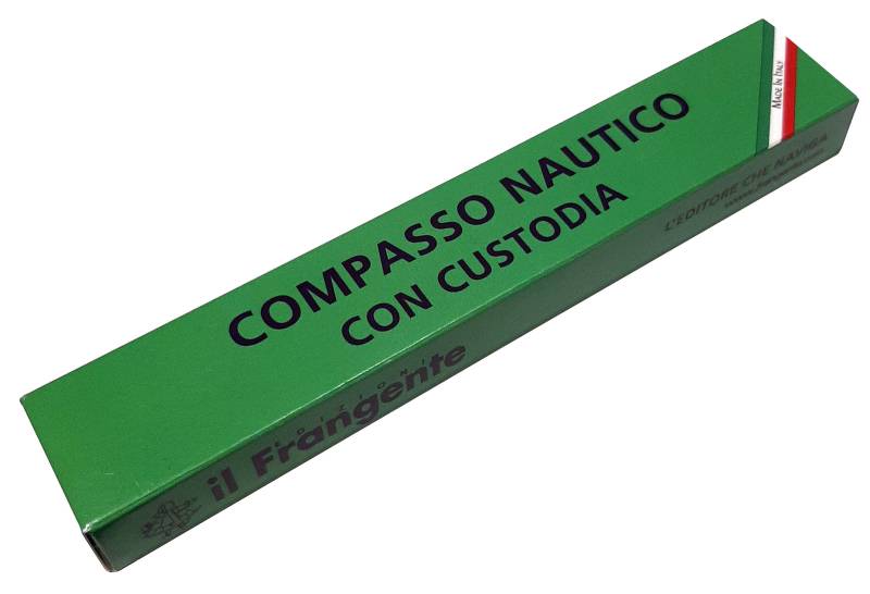 Compasso nautico in ottone nichelato a punte fisse da 17,5 cm. Con busta in ecopelle di colore verde e scatola di confezione.