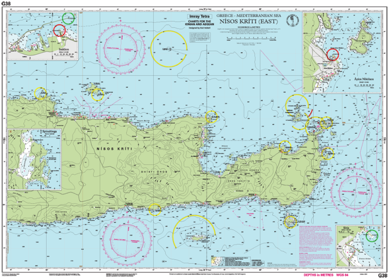 On this 2015 edition harbour developments and more recent survey data are shown at Áyios Nikólaos and Sitía.