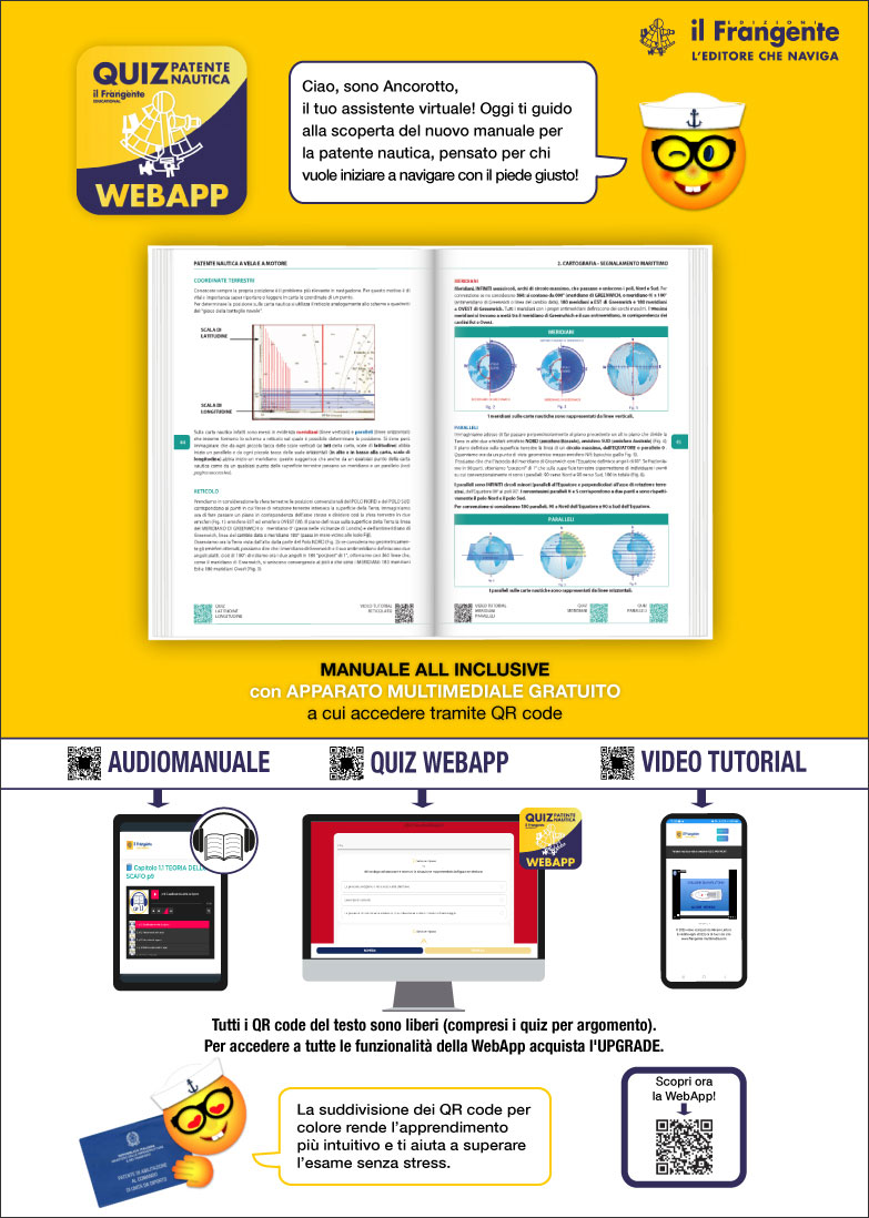 Manuale perfettamente allineato con il programma ministeriale per il conseguimento delle patenti nautiche entro 12 miglia e senza alcun limite dalla costa. Il testo è corredato da numerose immagini esplicative che costituiscono un valido ausilio alla memorizzazione della vasta materia d’esame.