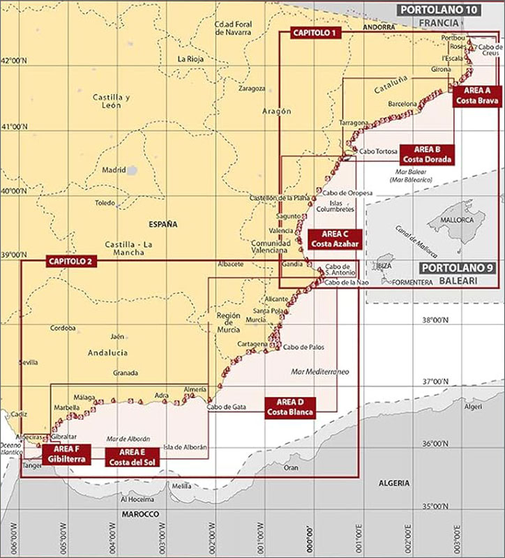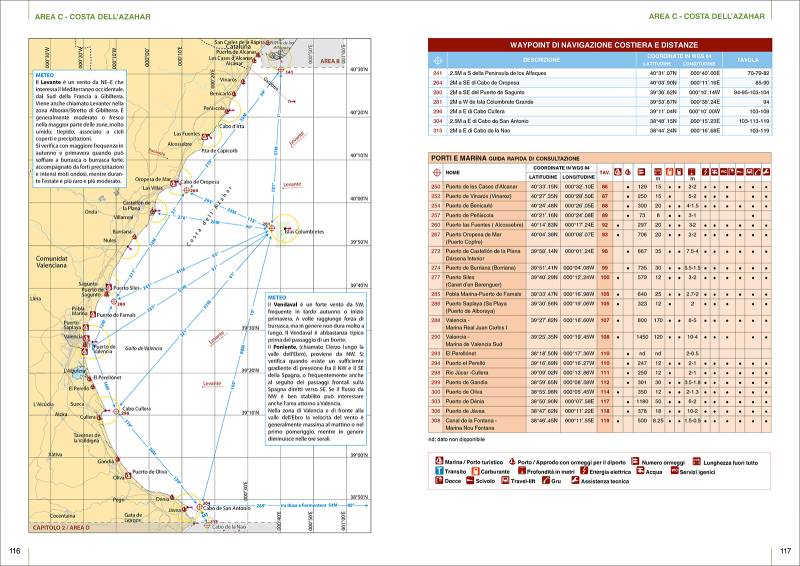 La principale caratteristica di questo portolano sono le 210 tavole cartografiche che illustrano tutti i porti, approdi e ancoraggi dell’area di navigazione riportati su piani molto dettagliati e di facile consultazione grazie a una ricca gamma di pittogrammi. Il presente volume descrive in sei macrozone l’intera costa spagnola mediterranea, che comprende Costa Brava, Costa Dorada Costa Azahar, Costa Blanca e Costa del Sol, a partire da Portbou al confine franco-ispanico fino a Tarifa nello Stretto di Gibilterra.