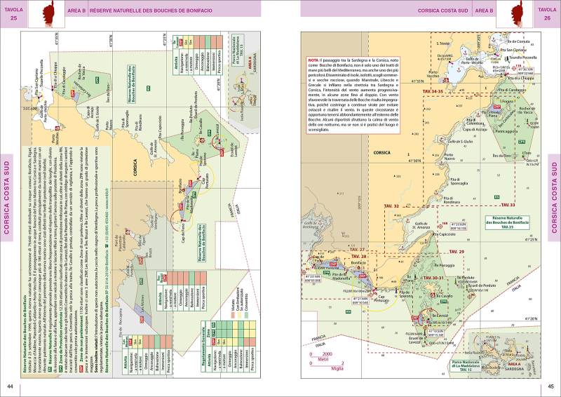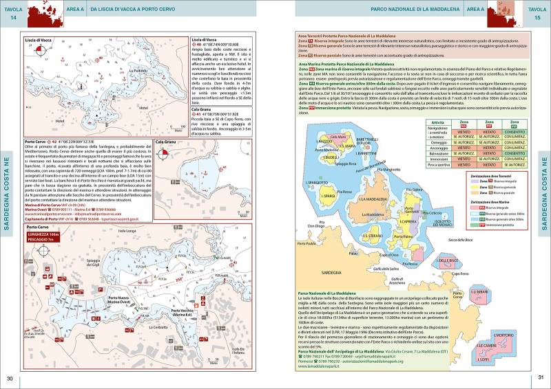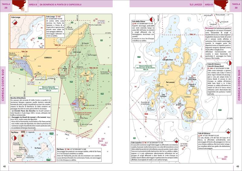 I numerosi piani di porti e baie sono corredati da una ricca gamma di pittogrammi che ne facilitano l’immediata consultazione. In tutti i piani è presente un’icona che indica i venti di traversia. Per i porti vengono indicati anche la lunghezza e il pescaggio massimi ammessi per l’accesso.