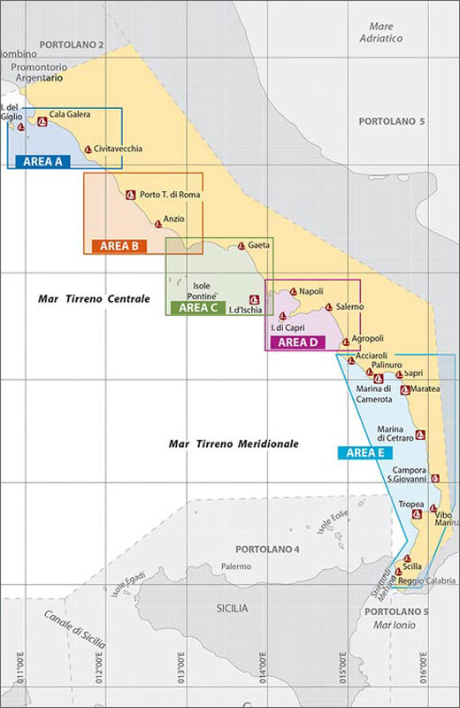 Questo portolano descrive la costa del Mar Tirreno a partire dal promontorio dell’Argentario fino a Punta Pellaro sulla costa calabra antistante lo Stretto di Messina. Questo tratto costiero è fronteggiato da isole di cui le principali, Isola del Giglio, Isole Pontine, Isola d’Ischia e Isola di Capri.