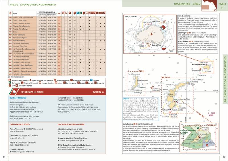 All’inizio di ogni area una guida rapida permette di consultare i principali porti e marina con i relativi servizi (erogazione di acqua e corrente, carburante, assistenza tecnica, contatti, ecc.). Basta dunque un rapido sguardo per essere in grado di scegliere il porto più adatto in base alle caratteristiche della propria barca e delle condizioni meteo.