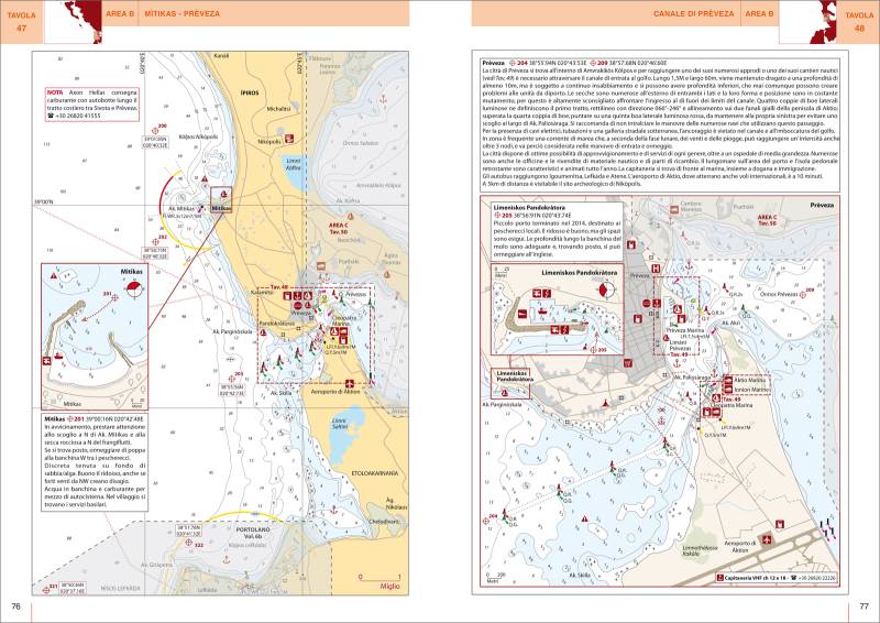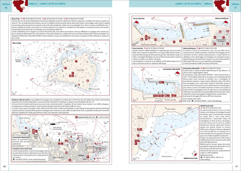 Nelle guide rapide di consultazione all’inizio di ogni capitolo sono elencati i principali porti e marina, con i relativi servizi (erogazione di acqua e corrente, carburante, assistenza tecnica, ecc.) e le baie idonee all’ancoraggio, con le relative caratteristiche utili al navigante (protezione, natura del fondo, profondità, possibilità di approdo con il tender, ecc.). Basta dunque un rapido sguardo per essere in grado di scegliere il porto o la baia a seconda della propria barca e delle condizioni meteo. I numerosi piani di porti e baie sono corredati da una ricca gamma di pittogrammi che ne facilitano l’immediata consultazione. Brevi testi completano le informazioni di pilotaggio indispensabili per una navigazione sicura. In tutti i piani è presente un’icona che indica i venti di traversia.