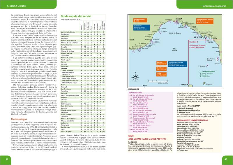 Questo volume descrive le coste del Mar Ligure, del Tirreno settentrionale, compreso l’Arcipelago Toscano con le sue belle isole molto frequentate dai diportisti. L’introduzione illustra l’area generale di navigazione, che comprende le strutture e i servizi dedicati alla nautica da diporto, le normative vigenti a livello europeo, la fauna marina, la sicurezza in mare e un’esaustiva sezione dedicata alla meteorologia ed ai cambiamenti climatici in corso. Esaurienti le note di pilotaggio per garantire una navigazione sicura, corredate da un ricco apparato di piani generali e di dettaglio di porti e baie, ognuno con i relativi waypoint di riferimento per l’atterraggio. A completare il tutto, numerose foto delle principali località e porti. All’inizio di ogni capitolo sono segnalate le rotte preferenziali per quella zona specifica di mare e le principali caratteristiche meteorologiche. Il portolano comprende anche un elenco delle carte nautiche di riferimento per questa zona di navigazione.