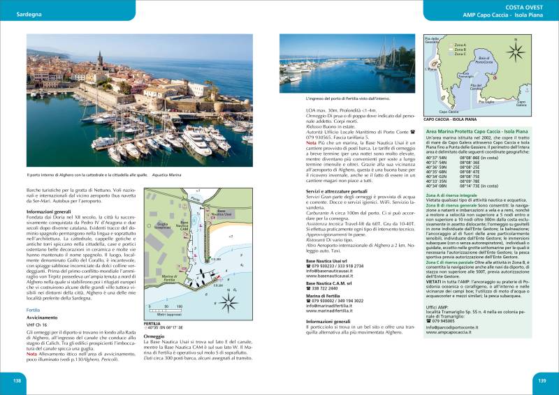 Gli autori hanno apportato i dovuti aggiornamenti per quanto concerne porti e marina, le cui caratteristische, servizi e contatti sono descritti in dettaglio. Data la particolare conformazione delle sue coste, la Sardegna rappresenta un magnifico campo di crociera che offre al disportista una miriade di baie e insenature per l’ancoraggio, con un occhio di riguardo alla salvaguardia di un notevolissimo patrimonio naturalistico, regolamentato da parchi e aree marine protette per i quali sono riportati normative, contatti e pianetti, ossia le informazioni indispensabili per una fruizione consapevole di zone di mare particolarmente fragili.