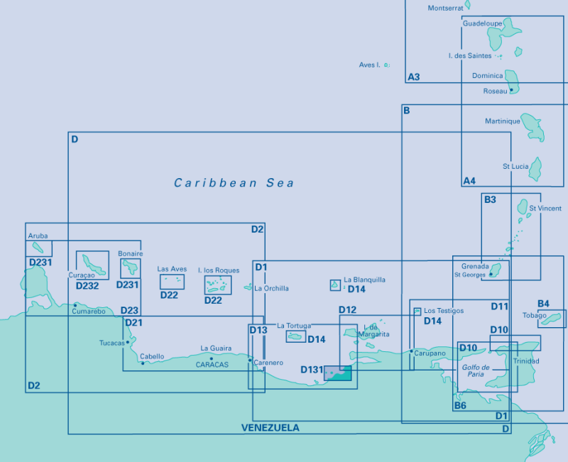 Imray-Iolaire charts for Caribbean are widely acknowledged as the best available for the cruising sailor. They combine the latest official survey data with first-hand information gathered over 60 years of research by Don Street Jr and his wide network of contributors. Like all Imray charts, they are printed on water resistant Pretex paper for durability, and they include many anchorages, facilities and inlets not included on official charts.