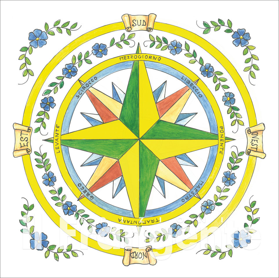 Artista in Milano, la cui fantasia ha creato una raffinata serie di rose dei venti.