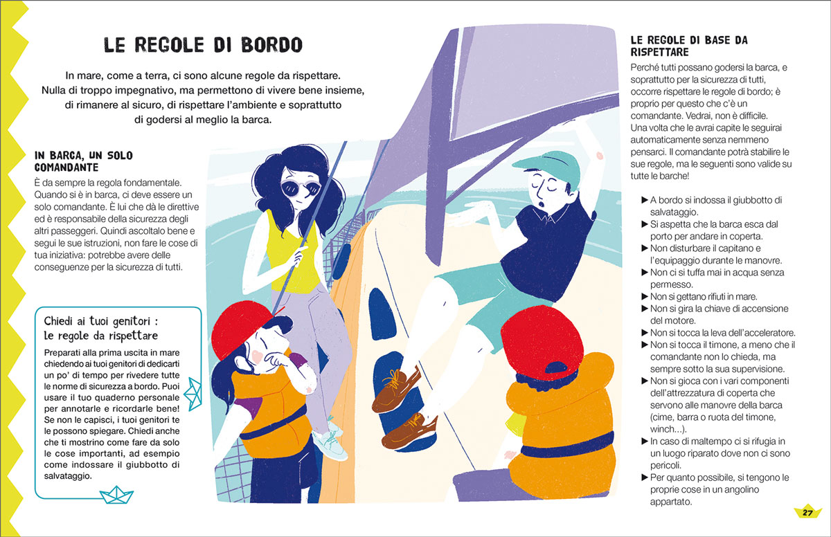 Questo libro con tanti disegni ti insegna a prepararti alla tua prima esperienza in barca e a scoprire tutto ciò che puoi fare a bordo.