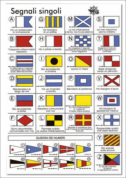 Codice internazionale con simbologia e significato dellle singole bandiere.