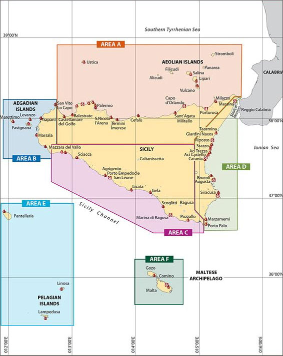 This pilot describes the coasts of Sicily, including its surrounding islands (Aeolian, Egadi, Pantelleria and Lampedusa), and the Malta islands.