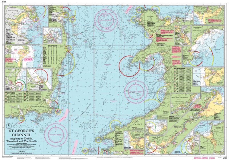 On this edition the chart specification has been improved to show coloured light flashes. The firing practice areas have been updated and the extents of the Skomer I. Marine Reserve is shown. There has been general updating throughout.
