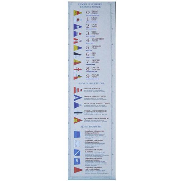 Questa stampa con Pannello Numerico e altri segnali, fa parte di una nuova collezione di stampe d'arredo direttamente ispirati dal codice internazionale dei segnali marittimi con bandiere in movimento, il loro significato è la corrispondenza con il codice Morse, contornati da una cornice millimetrata che indica la nostra latitudine e longitudine tutt'ora presenti nella cartografia nautica.