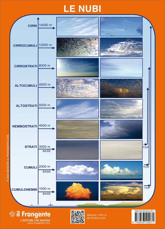 Sul retro riporta le immagini delle varie tipologie di nubi con il relativo nome e altezza di sviluppo.