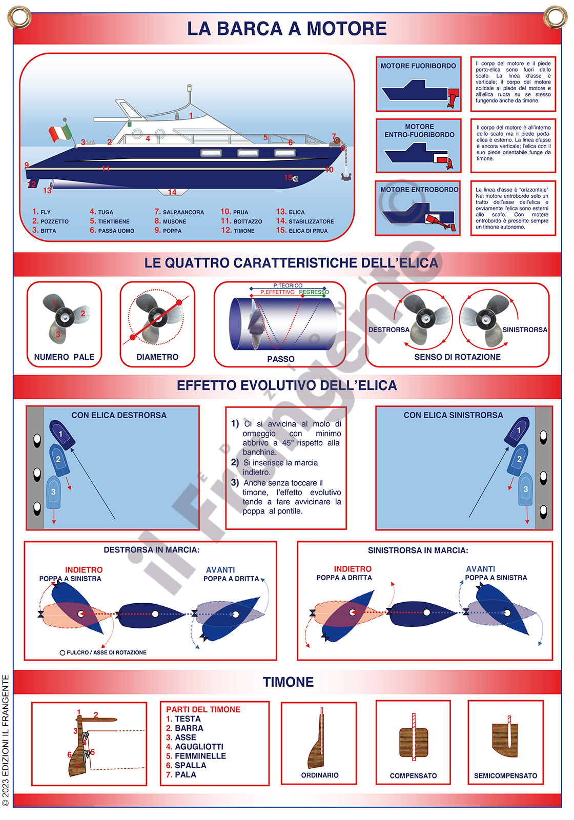 Schema e nomenclatura della barca a motore. Caratteristiche dell’elica. Elica destrorsa, elica sinistrorsa, effetto evolutivo. Nomenclatura e tipi di timone.