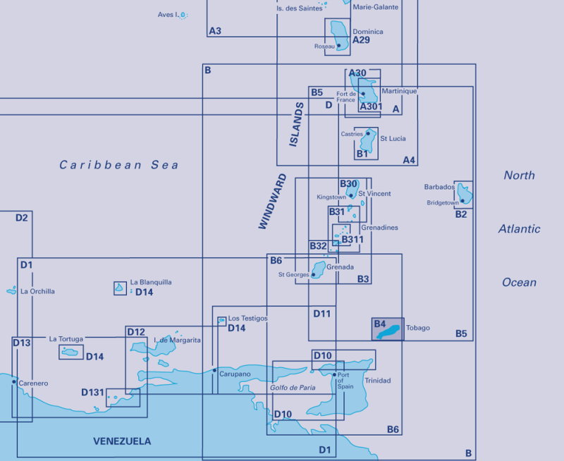 Imray-Iolaire charts for Caribbean are widely acknowledged as the best available for the cruising sailor. They combine the latest official survey data with first-hand information gathered over 60 years of research by Don Street Jr and his wide network of contributors. Like all Imray charts, they are printed on water resistant Pretex paper for durability, and they include many anchorages, facilities and inlets not included on official charts.